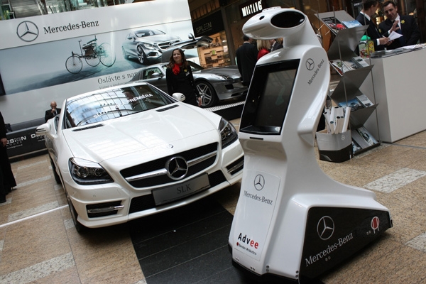 Autonomní robot Advee, který se dokáže bezkolizně pohybovat v prostoru a komunikovat s lidmi, u kterých zastaví, vznikl ve spolupráci s kolektivem společnosti Bender Robotics.